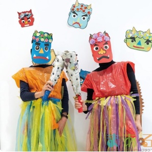 大きな恵方巻を作ったり節分ダンスでオニと仲良くなっちゃおう。